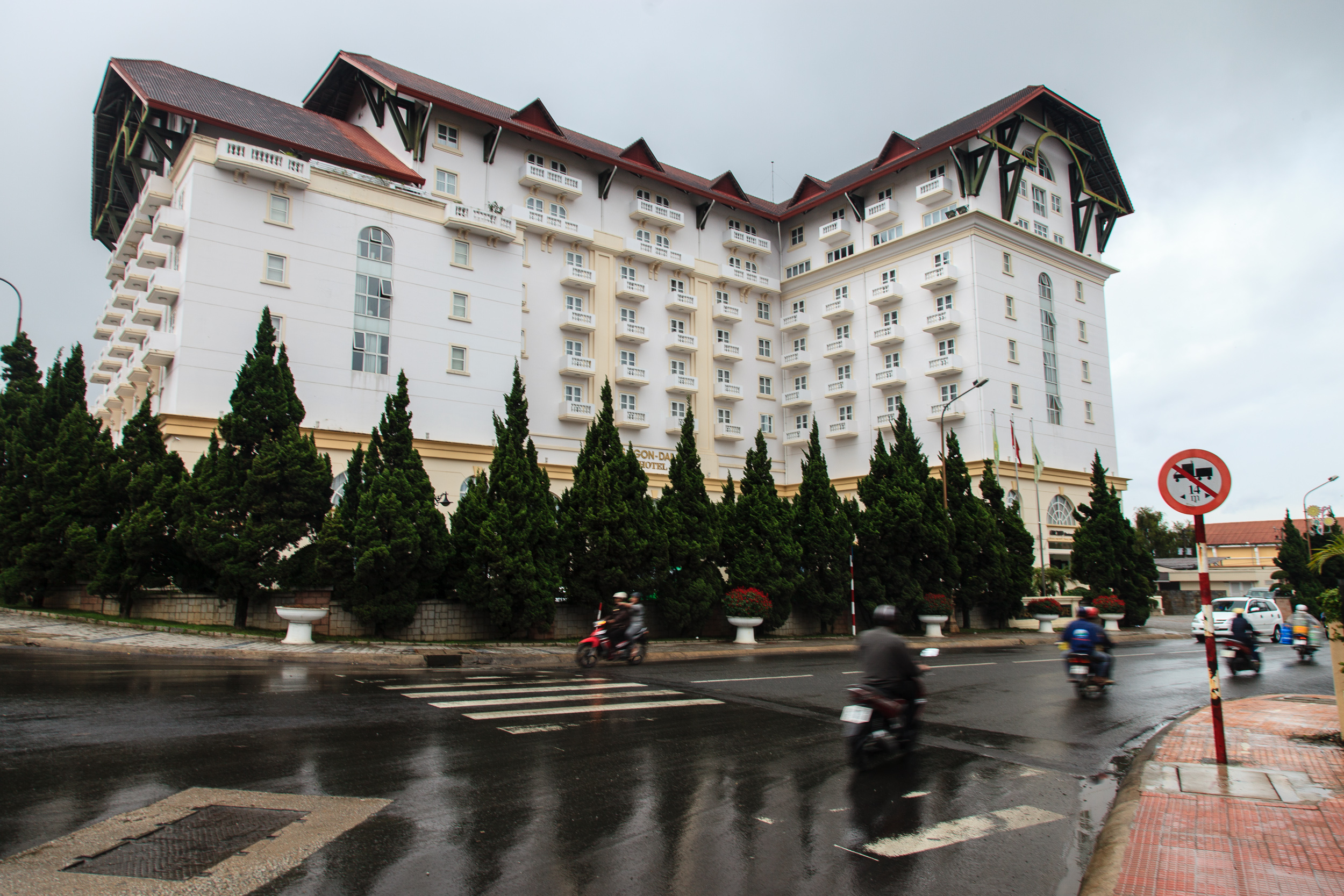 В два часа дня вторника мы уже заселились в старенький отель в самом центре Далата: крупное каменное строение начала XX века, с высокой черепичной крышей, башенками и мансардными окнами; то ли маленький замок, то ли дом с привидениями. Привидений внутри не обнаружилось, зато обнаружилось большое количество старого дерева, темного металла, старых телефонных аппаратов и часов — и множество старинных автомобилей, украшающих внутренний дворик и холлы отеля. Красота.
