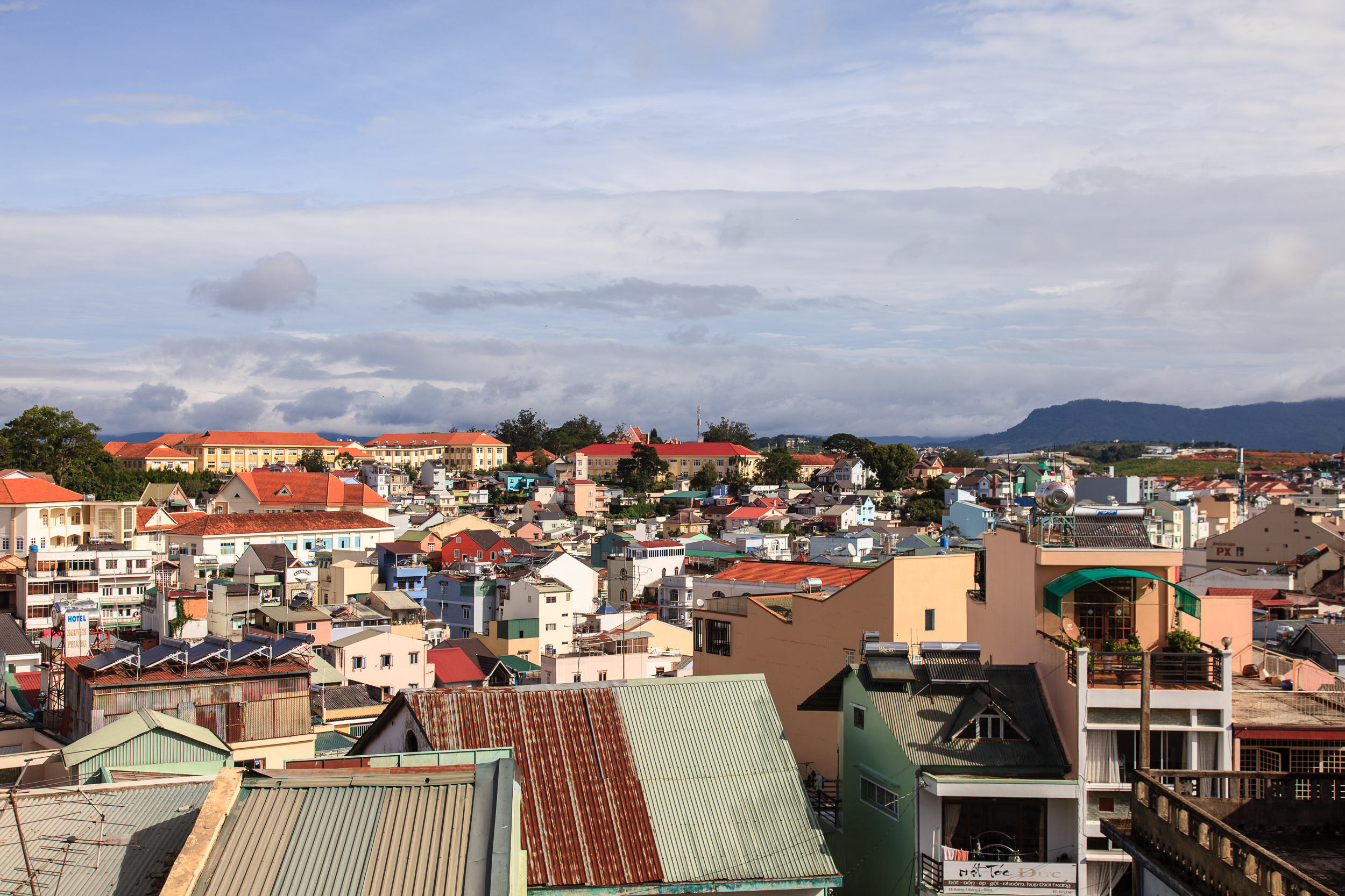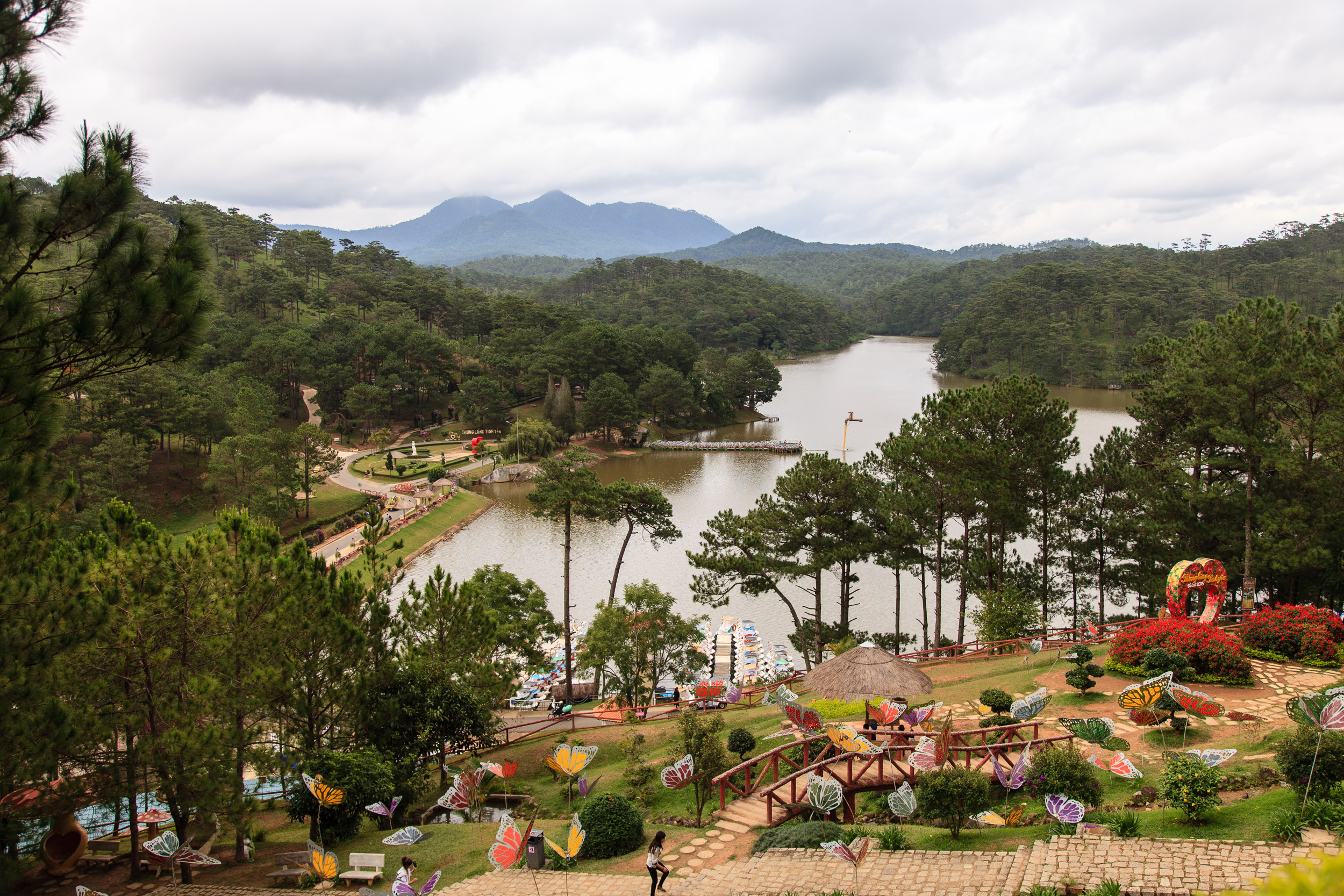 Далат — место довольно необычное для Вьетнама. Это горный курортный городок, основанный в конце XIX века французскими колонистами в горах в юго-восточной части страны, на высоте примерно 1500 метров над уровнем моря. Из-за высотного расположения климат в Далате резко отличается от большей части остального Вьетнама: вместо удушающей жары здесь почти круглый год стоит весенняя свежесть и прохлада, вместо тропических джунглей с пальмами и бананами здесь всё покрыто соснами, вместо риса на местных фермах выращивают клубнику, шелковицу и цветы. Архитектура города тоже довольно примечательна: здесь множество зданий еще французской постройки: отели, виллы, католические соборы — есть даже небольшая Эйфелева башня, выполняющая функции радиовышки. "Город Вечной Весны", "Вьетнамская Швейцария", "Le Petit Paris" — это все говорят про Далат. Ну, немного преувеличивают, конечно: забыть, о том что ты в Азии, тут все же не получится — но европейское влияние действительно ощущается сильнее, чем где-либо во Вьетнаме.