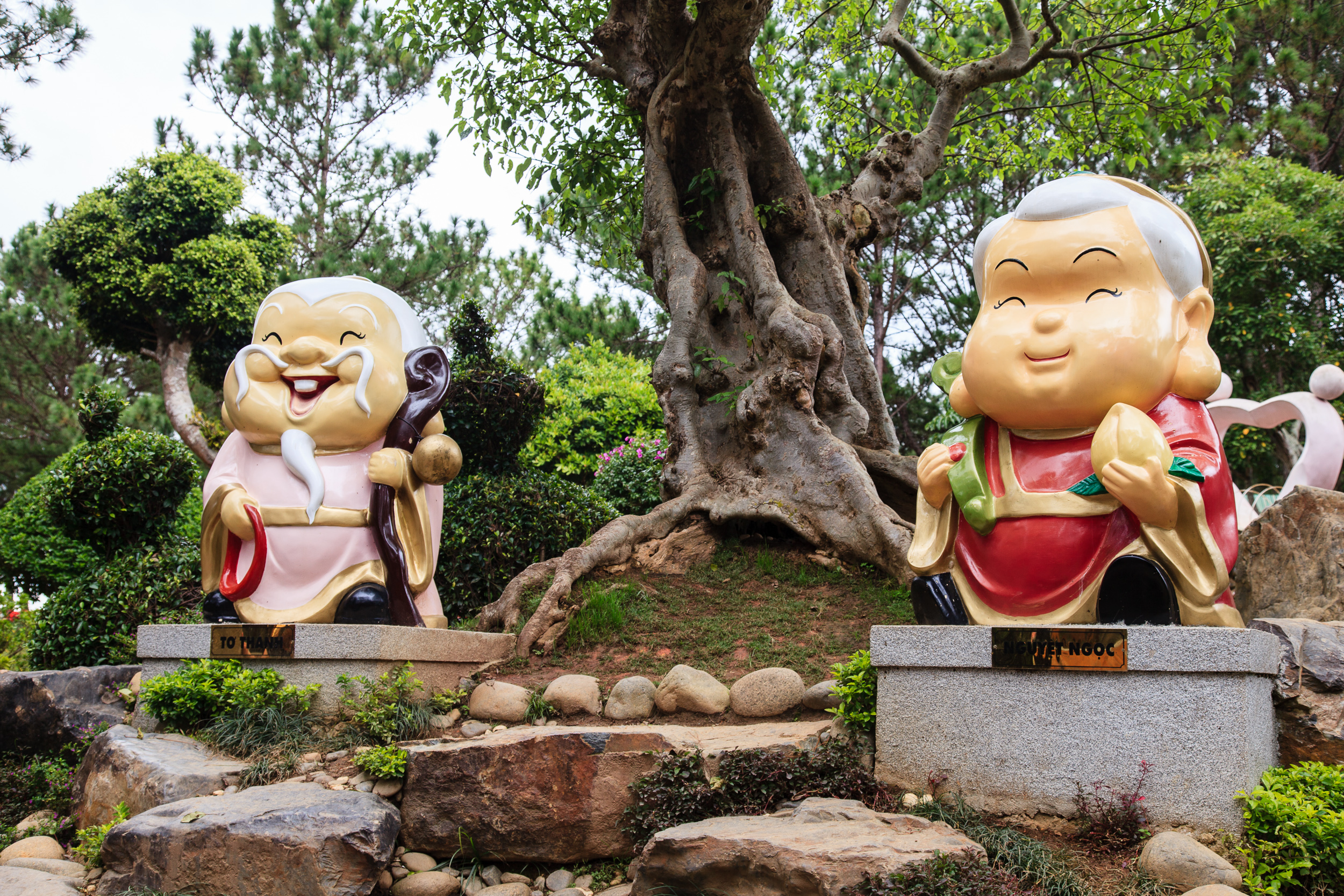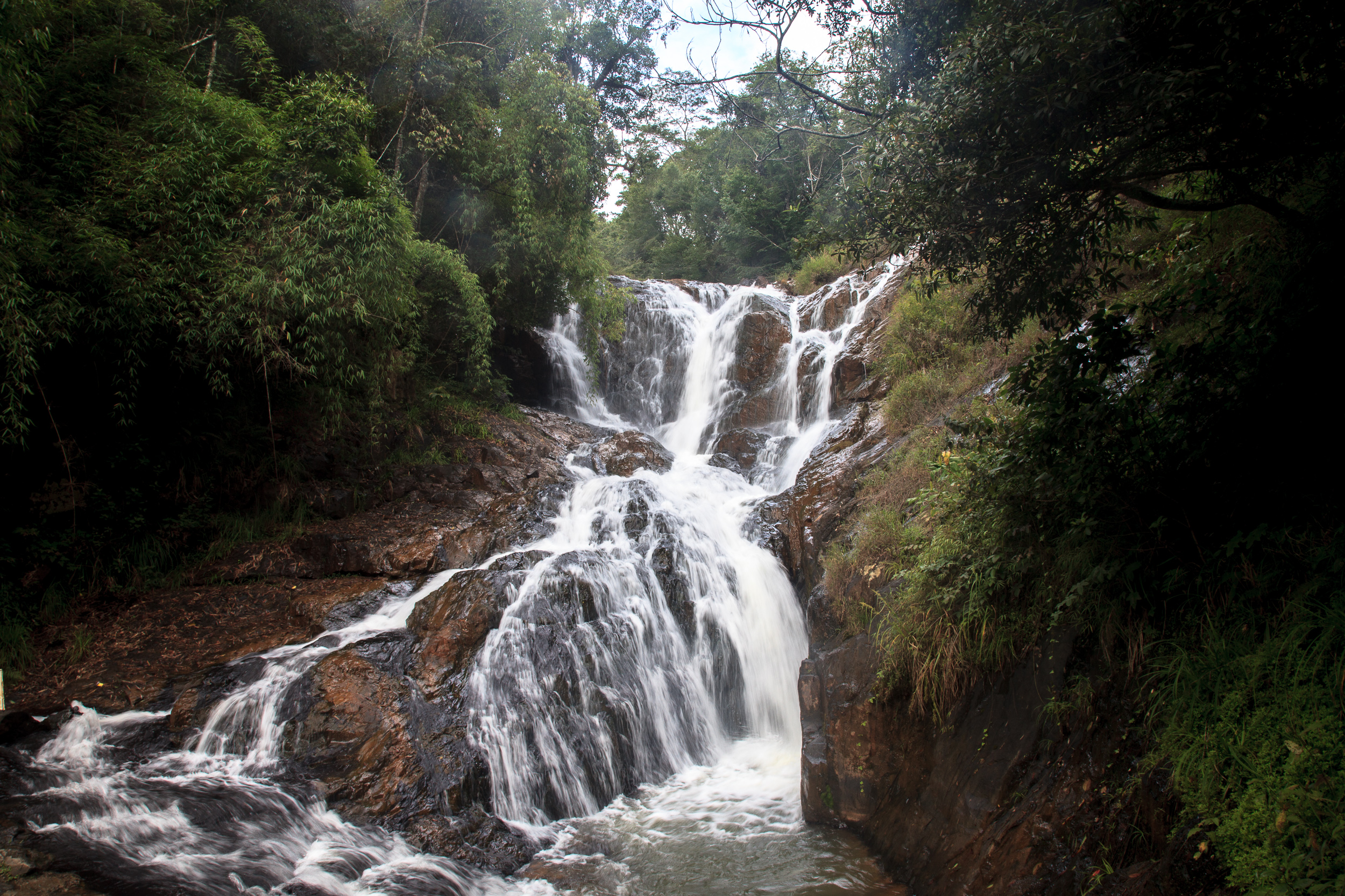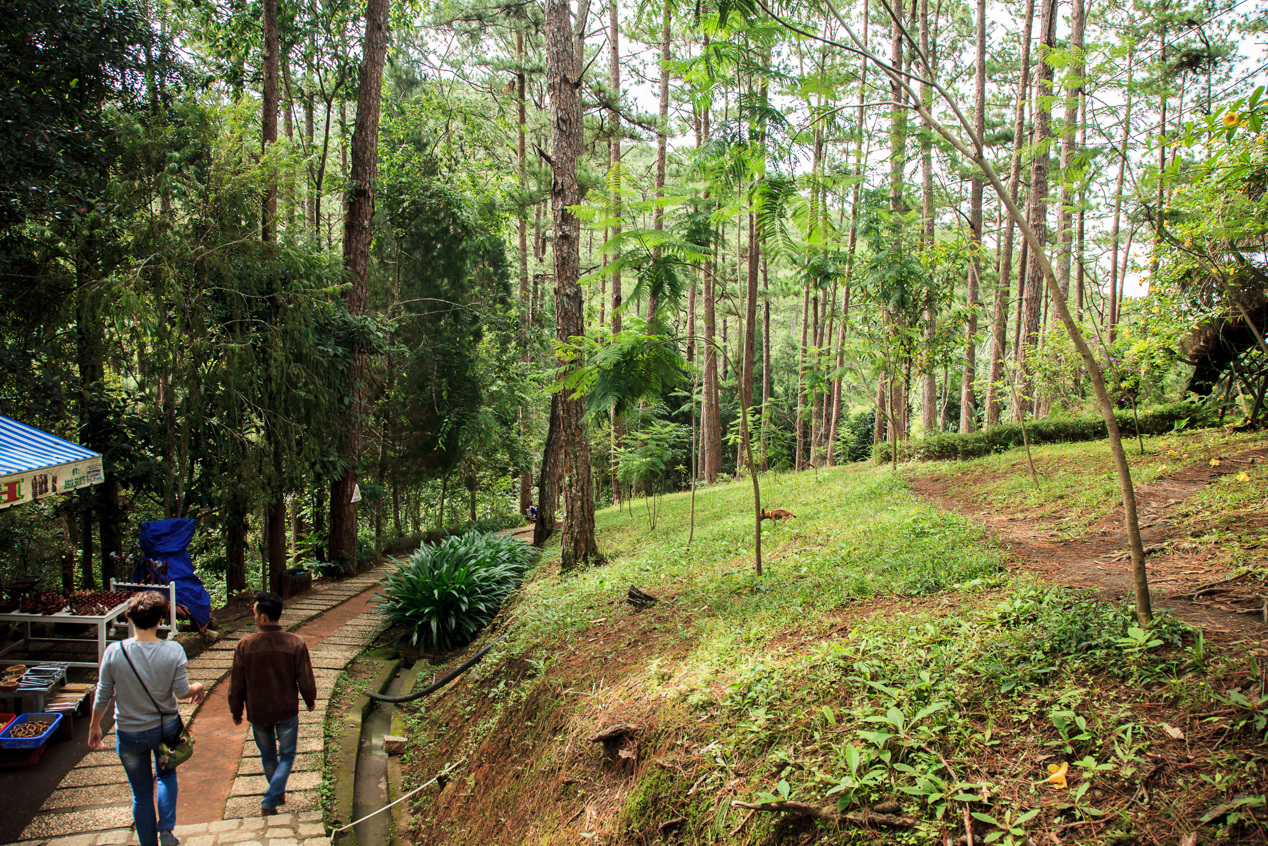 Начали с посещения каскада водопадов Датанла (Datanla) к югу от города. Водопады довольно полноводные, хотя и не отличающиеся какими-то особыми габаритами — так, средних размеров, до какого-нибудь Йосимити, конечно, далеко. Впрочем, места вокруг очень живописны: узкое глубокое ущелье, по дну которого бежит речка — красиво и стоит того, чтобы посмотреть. Плюс спуститься вниз от стоянки до первого водопада каскада можно не только пешком, но и на некоем варианте американских горок: извилистой рельсовой трассе, по которой скользят одно-двух-местные тележки-вагонетки. Похоже на обычные американские горки, но у каждой тележки есть индивидуальный тормоз, так что пассажиры могут регулировать скорость, с которой тележка катится вниз. Впрочем, если вы не любитель подобного экстрима, можно спуститься и по более традиционной дорожке-серпантину.