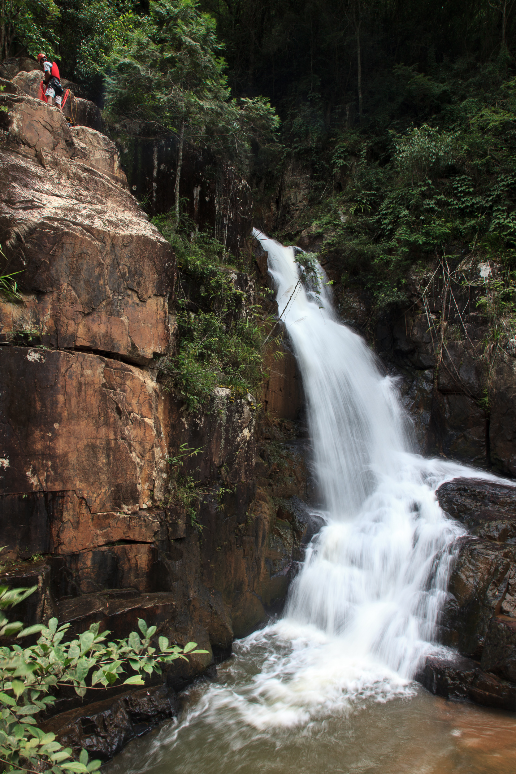 К нижнему же каскаду ведет более узкая тропа-лесенка, а для более ленивых ходит кабинка-фуникулер. Все очень аккуратно и ухожено, повсюду трудолюбиво работают местные: что-то все время подметают, подкрашивают, укрепляют. Вообще, вот эта вот трудолюбивость во вьетнамцах мне очень импонирует: работают чуваки явно много и на совесть. Приятно посмотреть.