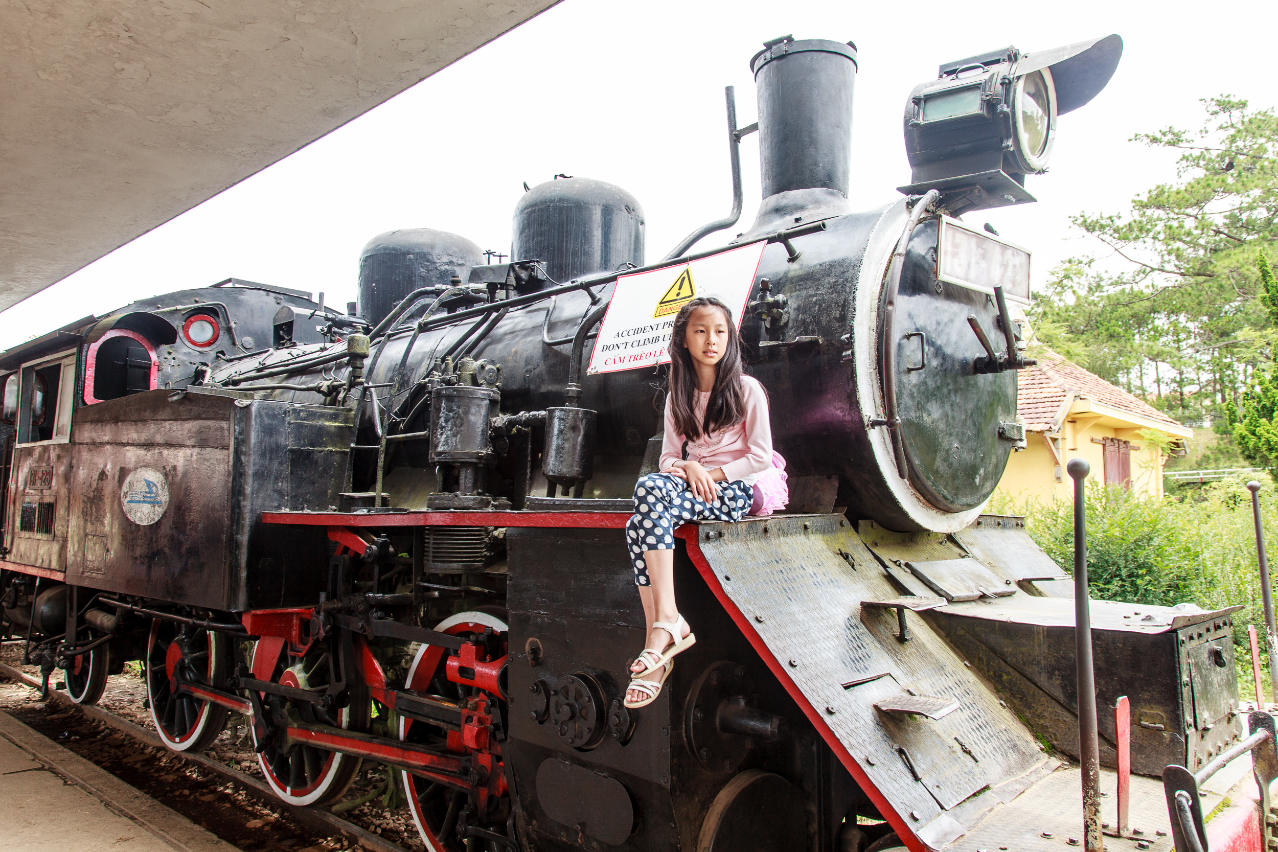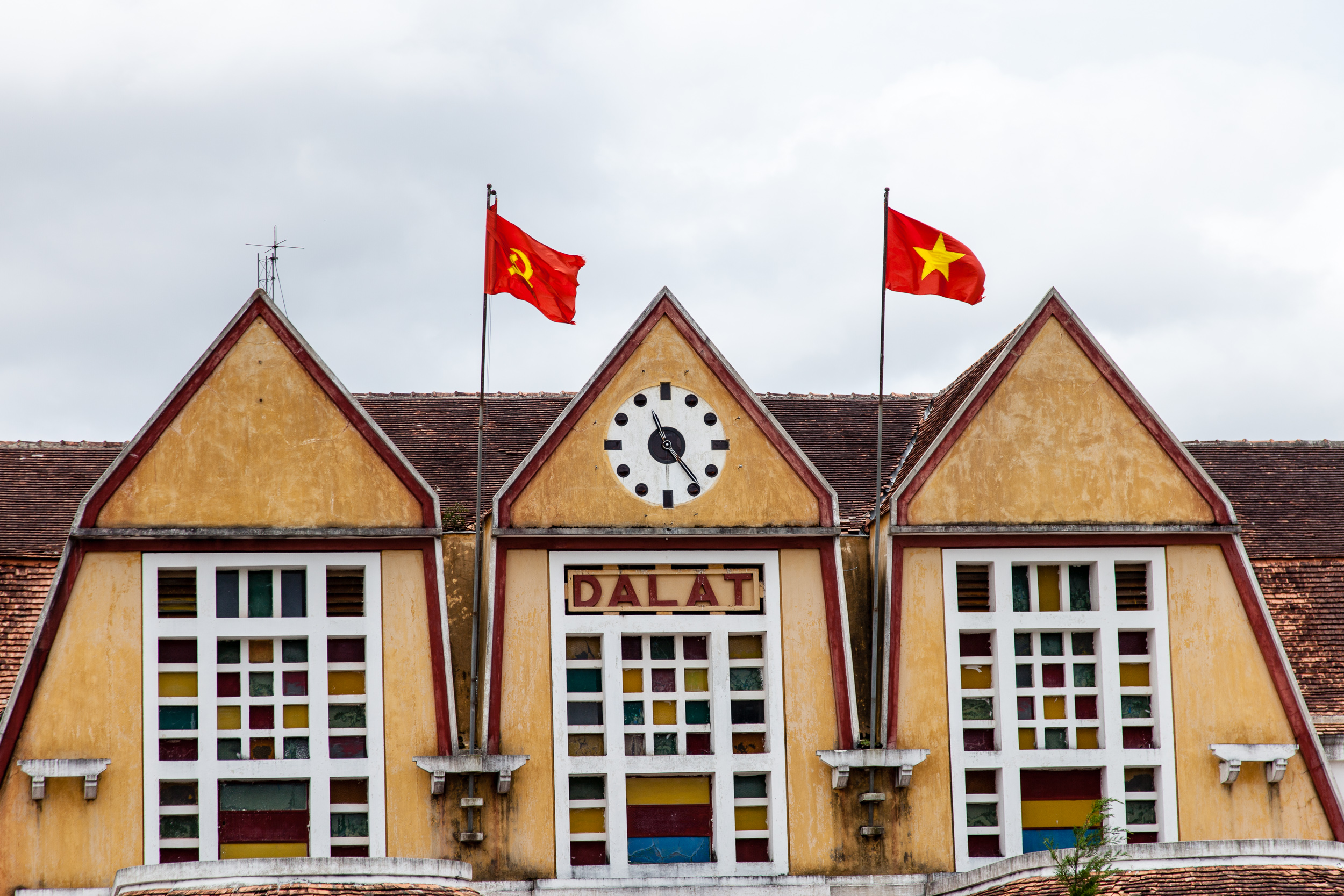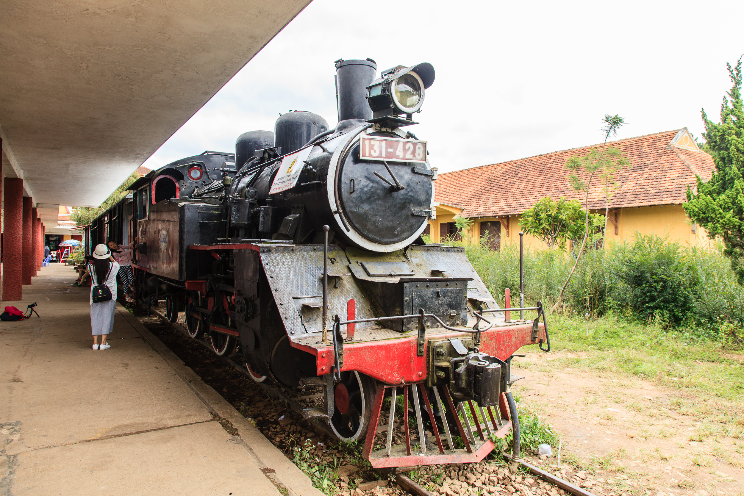Когда французы строили в Далате горный курорт, они провели сюда ветку железной дороги и построили небольшой симпатичный вокзал в стиле Арт-Деко. Ветка с 70х годов прошлого века не действует — разбомбили в войну — и Далат более не соединен с основной железнодорожной сетью Вьетнама. Однако сам вокзал работает, как и небольшой 7-километровый участок пути, идущий от него в пригородную деревушку Трай Мат. Участок работает как туристический аттракцион: немолодой (хоть и дизельный) локомотив таскает несколько стилизованных под старину вагончиков. На соседнем пути стоит реальный ветеран: японский паровоз времен второй мировой, запряженный в реальные старинные вагоны. Но этот состав там на вечном приколе, служит декорацией.