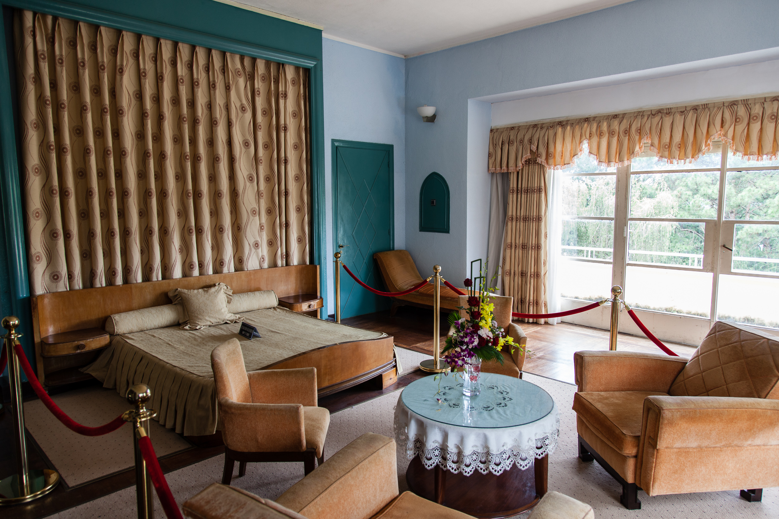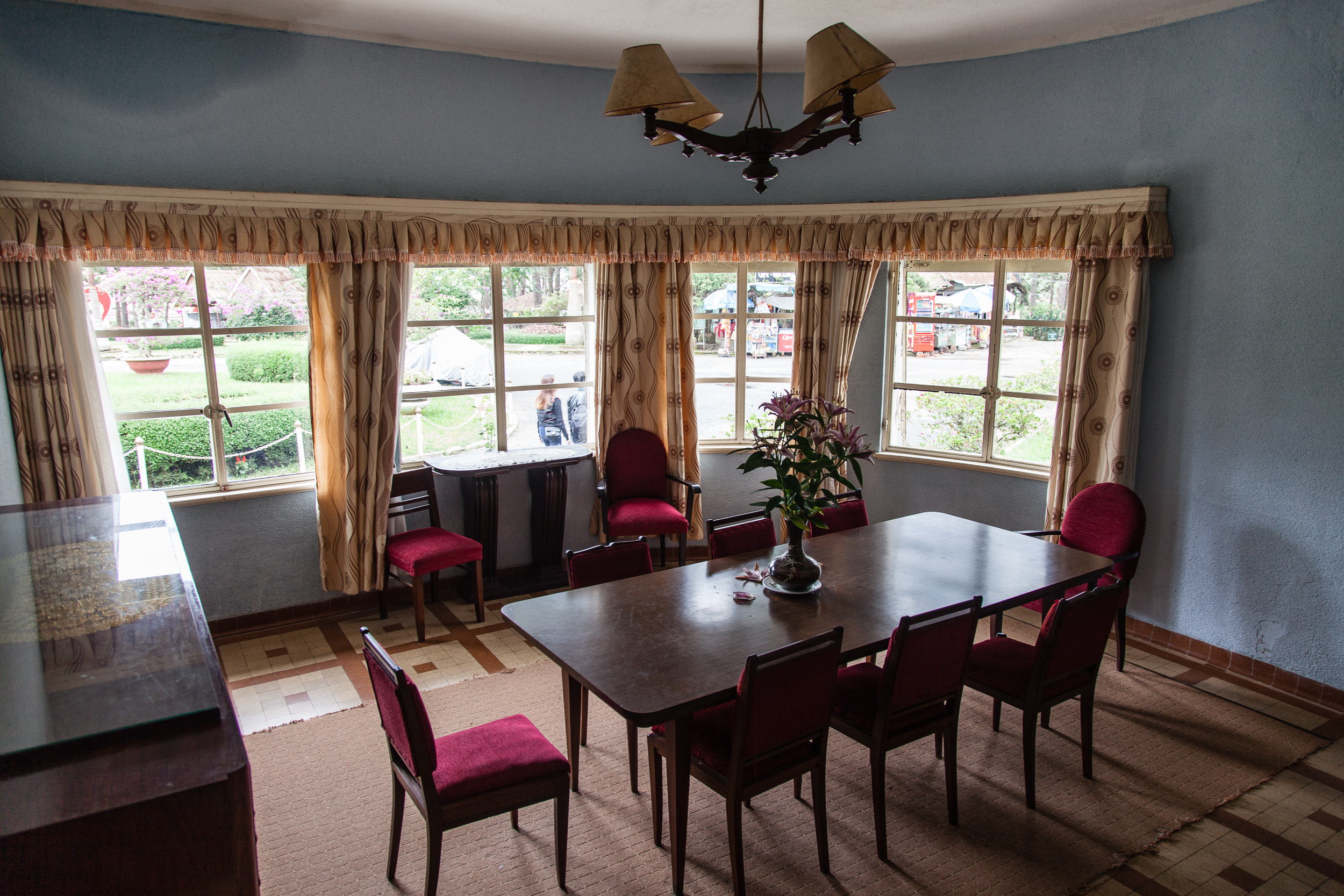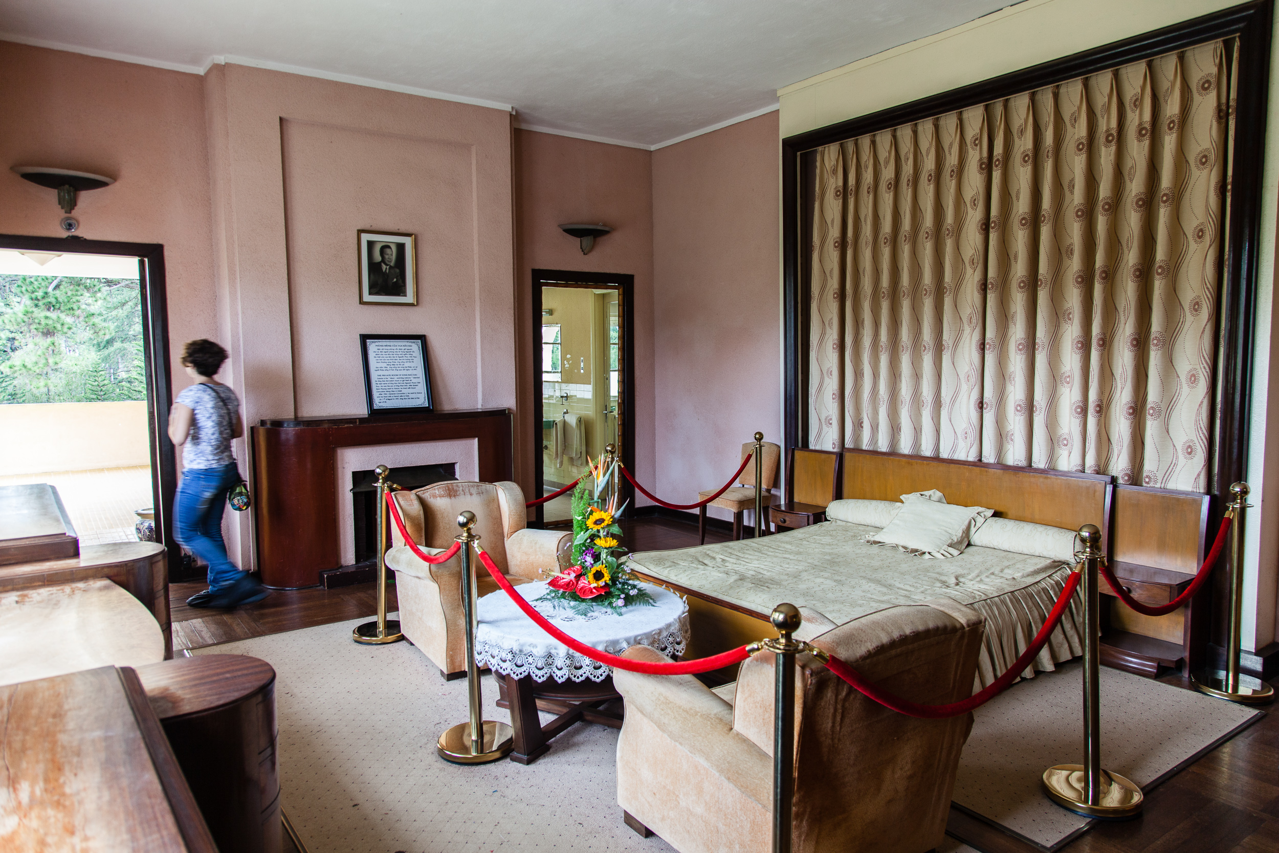 Ну.. что тут сказать. Здание особыми архитектурными достоинствами не блещет, не Петергоф, конечно, ни разу :) Снаружи напоминает скорее какой-нибудь советский санаторий средней руки. Внутри же на первом этаже сохранился парадный зал с камином и роялем, рабочий кабинет монарха, зал для совещаний, кухни и столовая; на втором этаже — спальни: принцесс, принцев, императора и императрицы. Демонстративной роскошью и не пахнет, скорее "комфортно и со вкусом" — ну, так, как в начале 20го века мог понимать комфорт и вкус марионеточный правитель бедной страны-колонии. Но тут надо понимать, что это именно "летняя дача", место для жизни, а не для дворцовых церемоний. Парадно-пафосный дворец — в столице, городе Хуэ, нам туда еще предстоит доехать. А тут — именно что место для повседневной жизни монаршьей семьи, к тому же прилично обветшавшее за прошедшие годы.