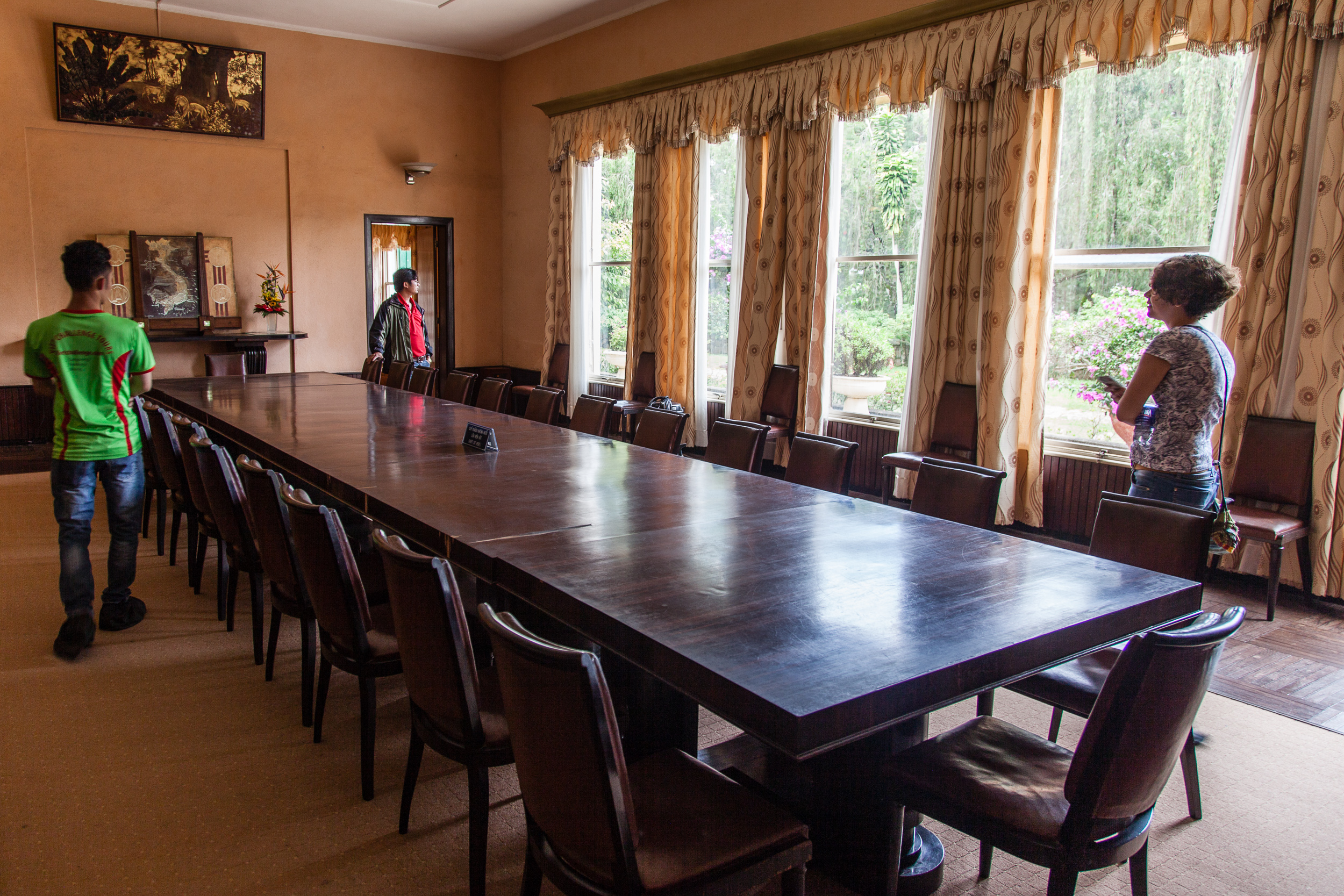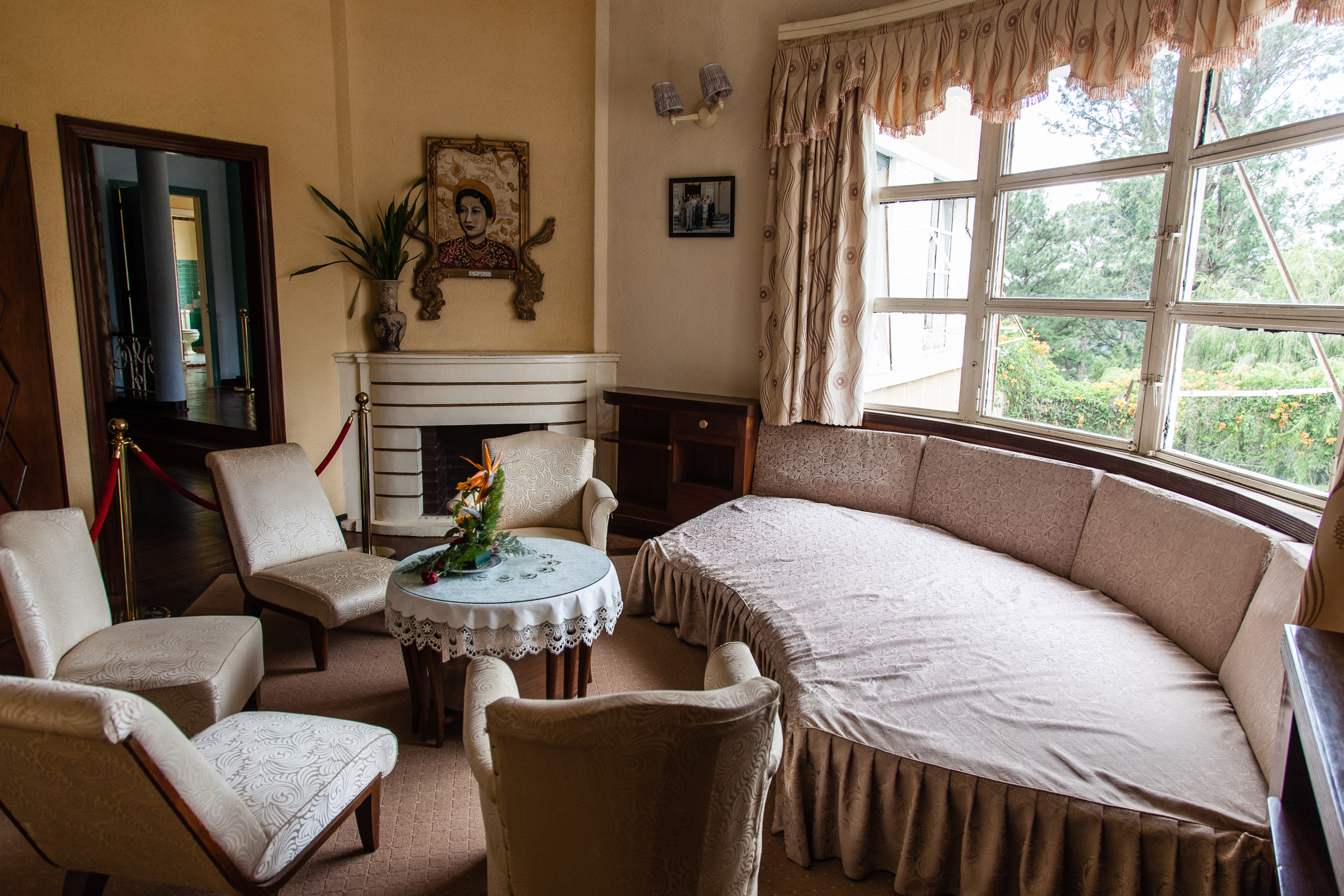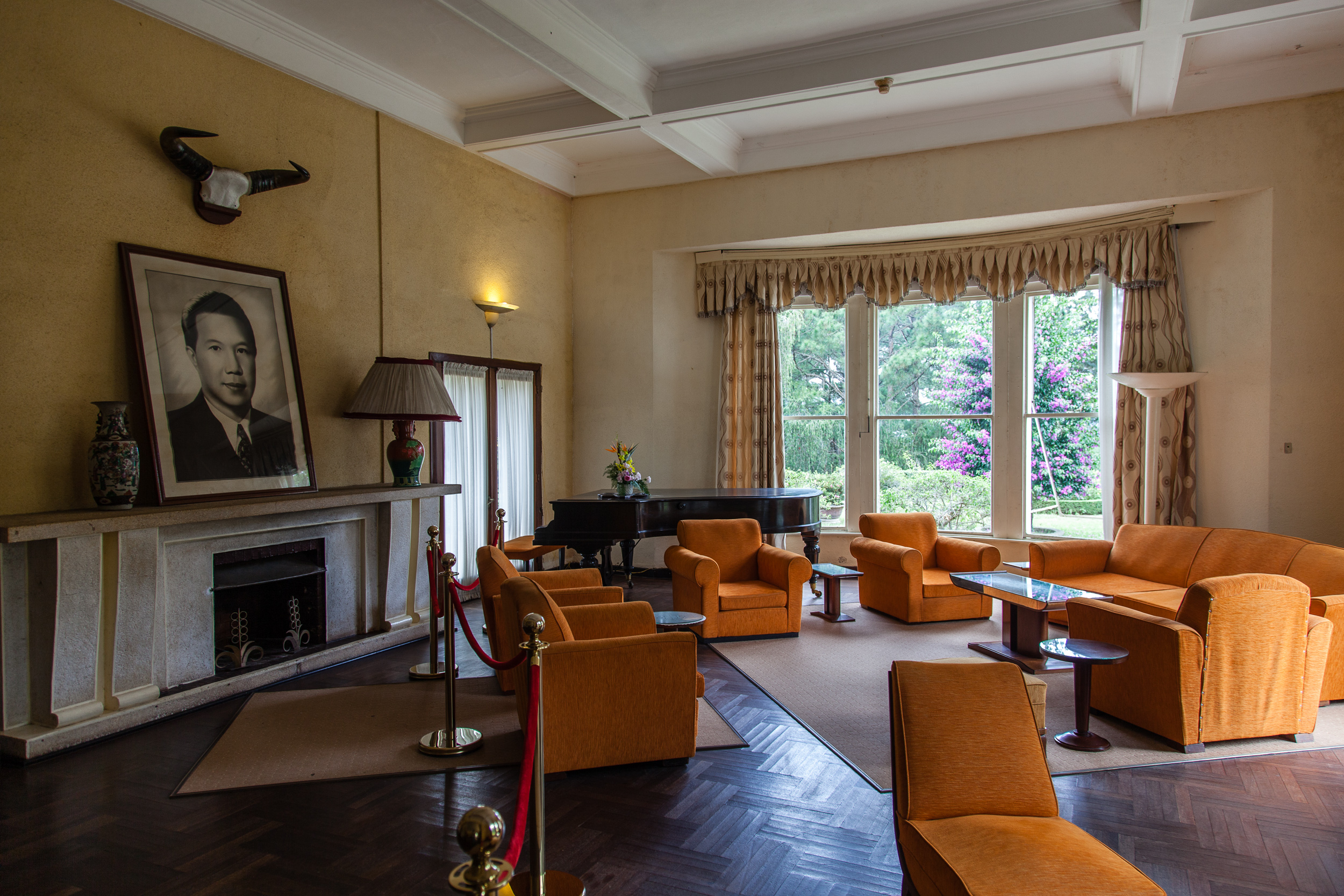 Ну.. что тут сказать. Здание особыми архитектурными достоинствами не блещет, не Петергоф, конечно, ни разу :) Снаружи напоминает скорее какой-нибудь советский санаторий средней руки. Внутри же на первом этаже сохранился парадный зал с камином и роялем, рабочий кабинет монарха, зал для совещаний, кухни и столовая; на втором этаже — спальни: принцесс, принцев, императора и императрицы. Демонстративной роскошью и не пахнет, скорее "комфортно и со вкусом" — ну, так, как в начале 20го века мог понимать комфорт и вкус марионеточный правитель бедной страны-колонии. Но тут надо понимать, что это именно "летняя дача", место для жизни, а не для дворцовых церемоний. Парадно-пафосный дворец — в столице, городе Хуэ, нам туда еще предстоит доехать. А тут — именно что место для повседневной жизни монаршьей семьи, к тому же прилично обветшавшее за прошедшие годы.