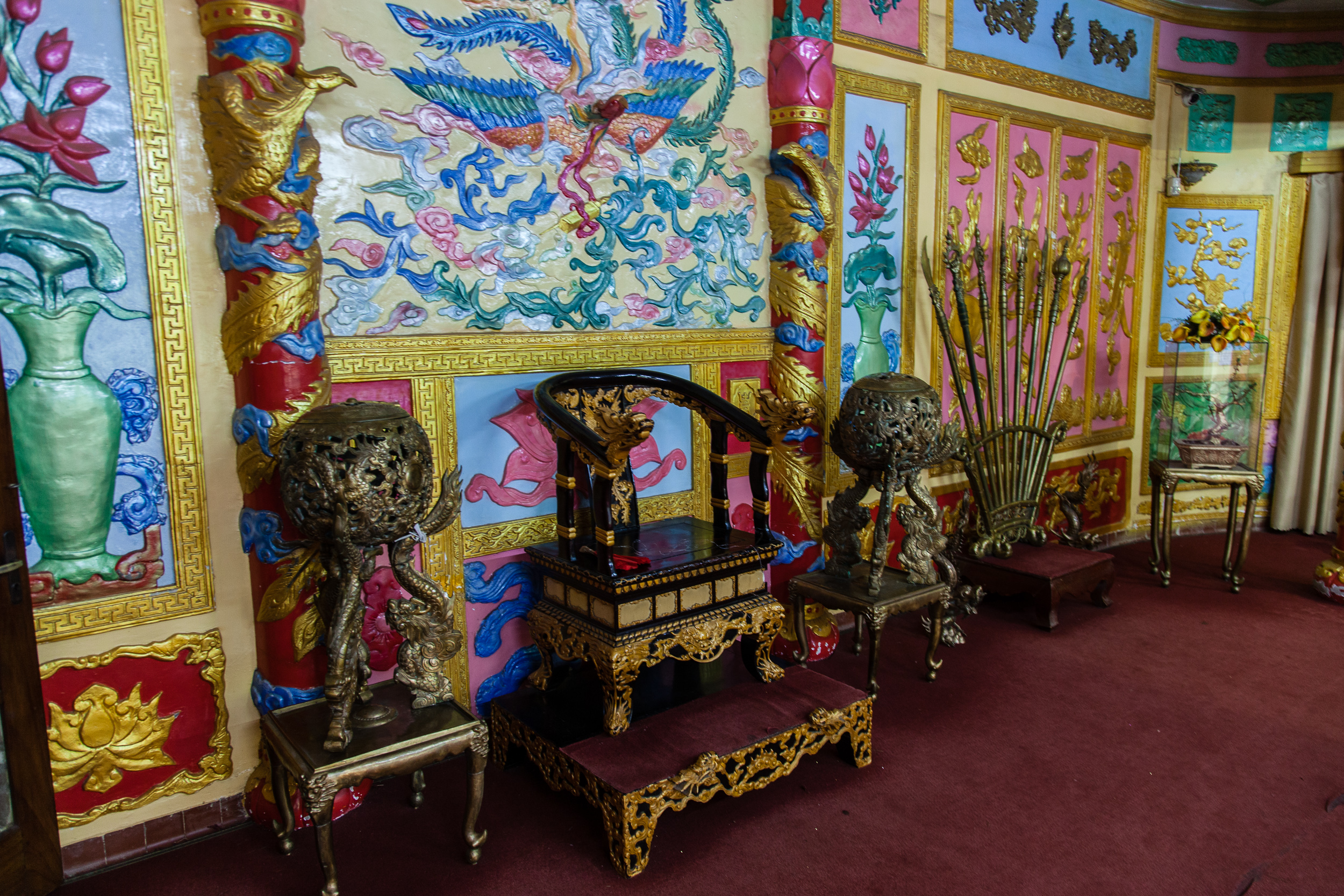 В любом случае погулять по залам дворца было интересно, благо наш гид (вернее, водитель) рассказывал довольно много про императора, его детей и их деятельность, как во Вьетнаме, так и в иммиграции. Рассказы эти сопровождались обязательно-ритуальными оговорками про то, что, мол, «с 30х годов прошлого века, когда у нас появился дорогой товарищ Хо Ши Мин и коммунистическая партия, нам больше не нужны никакие императоры», но никакой особой кровожадности за этими оговорками не стоит: последний из этих ненужных императоров закончил жизнь хоть и в иммиграции, но все же уважаемым общественным деятелем, в весьма почтенном возрасте, в окружении детей и внуков. Так что тут все кончилось не так уж и плохо, без Ипатьевского Дома, во всяком случае.