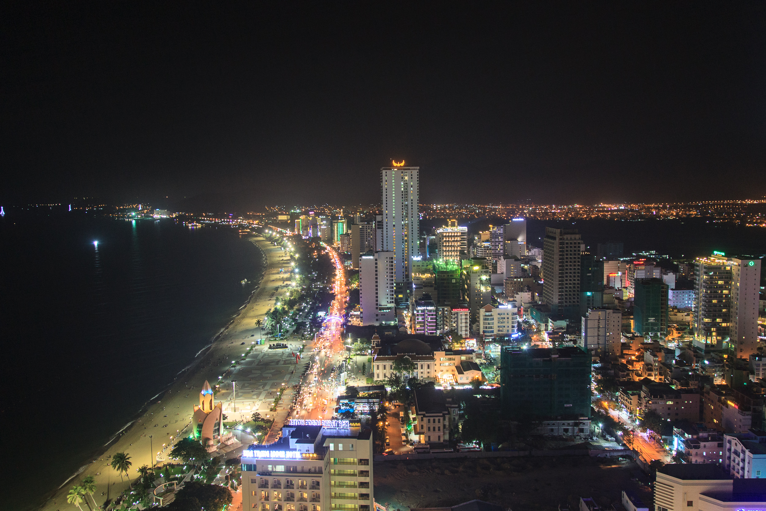 Впрочем, различия этих двух курортов не исчерпывается разным написанием. Если тайский Кочанг — это спартанский бэкпэкерско-бюджетный уголок в медвежьем (вернее, слоновьем) углу Таиланда, то вьетнамский Нячанг вполне по праву претендует на звание пляжно-туссовочной столицы Вьетнама. Тут масса достаточно пафосных пятизвездочных отелей с неизменными барами с бассейнами на крышах высоток, ночными клубами, полями для гольфа и прочими аттрибутами веселой жизни в азиатском ее понимании. Впрочем, бюджетных вариантов на любой вкус тут тоже хватает, да и главные местные достопримечательности — роскошный шестикилометровый пляж, тёплое море и холмистые острова, разбросанные по бирюзовым водам обширного залива — доступны всем и всегда. Впрочем, у Нячанга есть другая проблема (ну или как минимум особенность): сразу несколько крупных российских туроператоров возят сюда русских туристов в пакетные туры. И поэтому наших соотечественников тут... ну, не как в Турции в былые времена, конечно, но больше, чем хотелось бы для комфортного отдыха. Особенно русским ощущается южный район города, прилегающий к местному центральному парку: сам парк натурально именуется "Парк Горького", вокруг — множество ресторанчиков с русскими названиями и типа-как русскими меню (ну разумеется, чего же еще хочет наш человек, оказавшийся во Вьетнаме? Разумеется навернуть борща), 100% вывесок переведено на русский (качество перевода при этом традиционно ужасно), вьетнамки, продающие кокосы на пляже, зазывают клиентов криками "давай-давай", а сами клиенты даже не пытаются общаться с местными на чём-либо, кроме русского. Всё бы ничего, но я — бронируя жильё самостоятельно на booking.com с оглядкой на tripadvisor — как-то умудрился забукать отель прямо посереди этого русского мира. Ну и получил за это — в довесок к прекрасному виду на море — русский караоке-бар под окнами, весь вечер честно напоминавший уставшим путешественникам репертуар Михаила Круга. Засыпать было забавно.